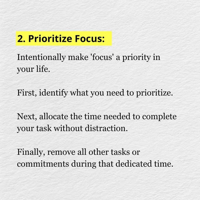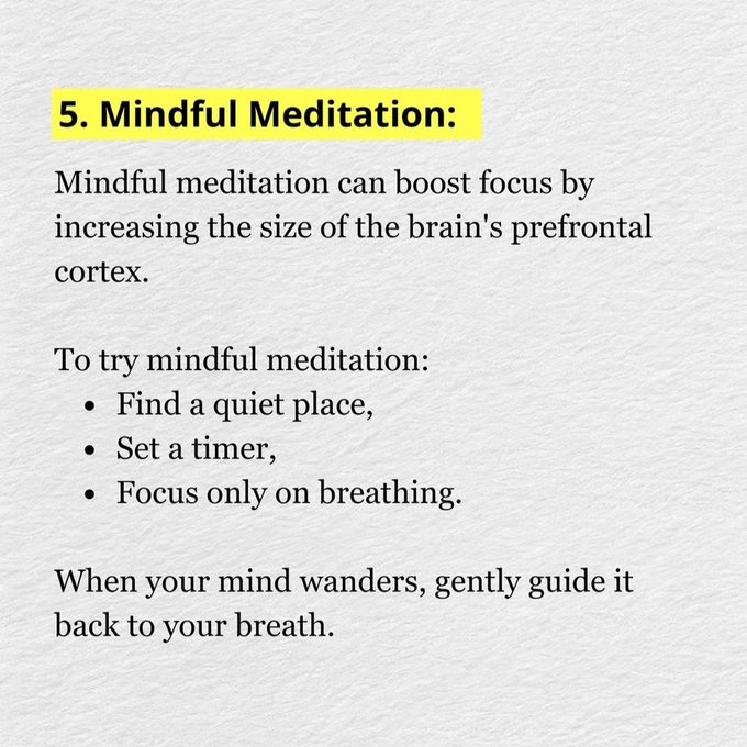 How to Boost Focus Permanently: 🧵Second BrainDec 23, 2025288Share1. Train Your Brain:2. Prioritize Focus:3. Utilize the Power of Music:4. Optimize Your Environment:5. Mindful Meditation:Thanks For Reading This If you find it valuable: Give it a ♥️ like and retweet it. And follow me for more.Subscribe